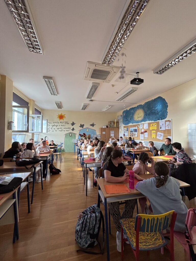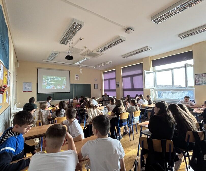 Kraj prvog polugodišta obilježili smo i božićnim kvizom kojeg je samoinicijativno pripremila učenica 8. razreda, Vanja Mihić. Uz glazbena pitanja, pronašla su se tu i pitanja iz povijesti, geografije, književnosti, filma… Kviz je bio namijenjen učenicima predmetne nastave, ali je oformljena i jedna ekipa koju su sačinjavali zaposlenici škole kako bi podržali ovakve inicijative učenika. Naravno, ekipa zaposlenika škole bila je izuzeta iz nagrađivanja.