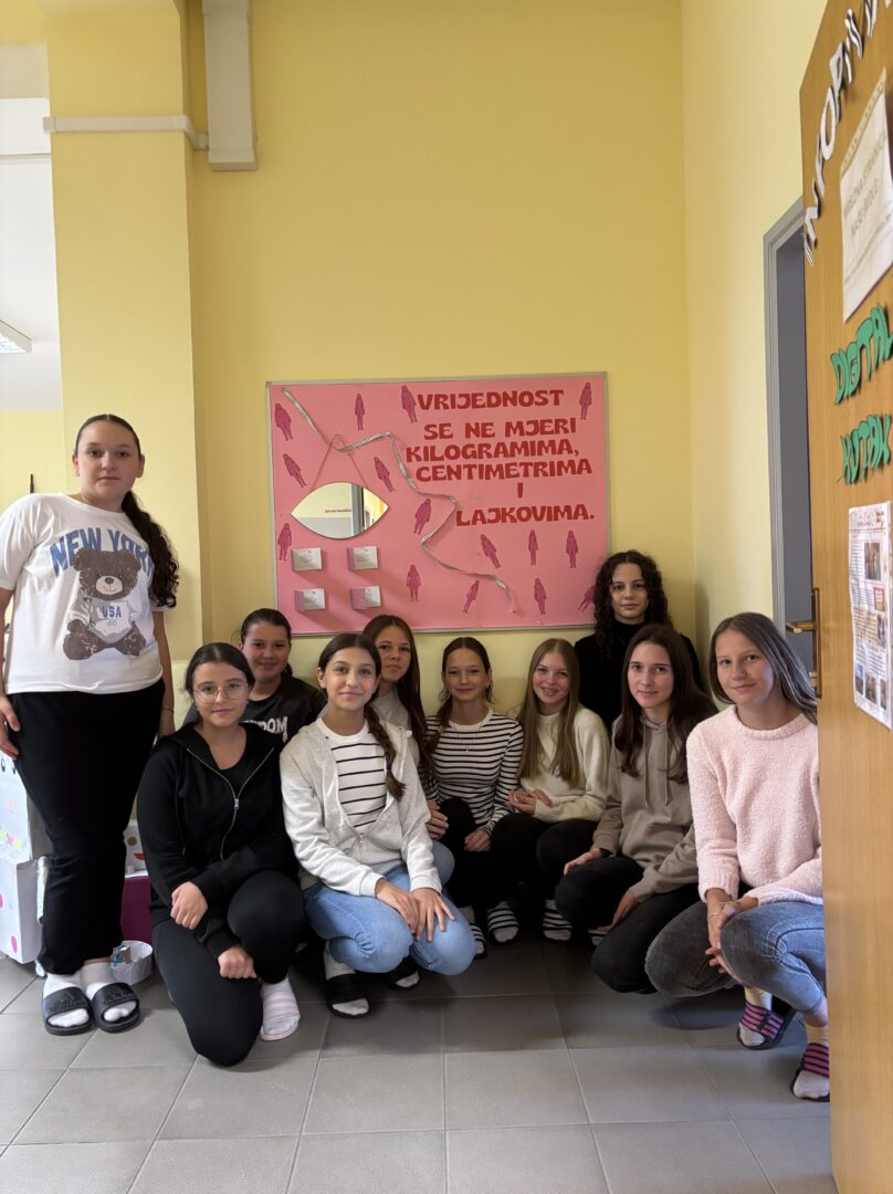 Započeli smo s provedbom pedagoških radionica za djevojčice osmih razreda u sklopu projekta „Oj, budi svoj(a)!“. Održane su dvije radionice, od kojih je jedna rezultirala panoom pod nazivom Vrijednost se ne mjeri kilogramima, centimetrima i lajkovima.