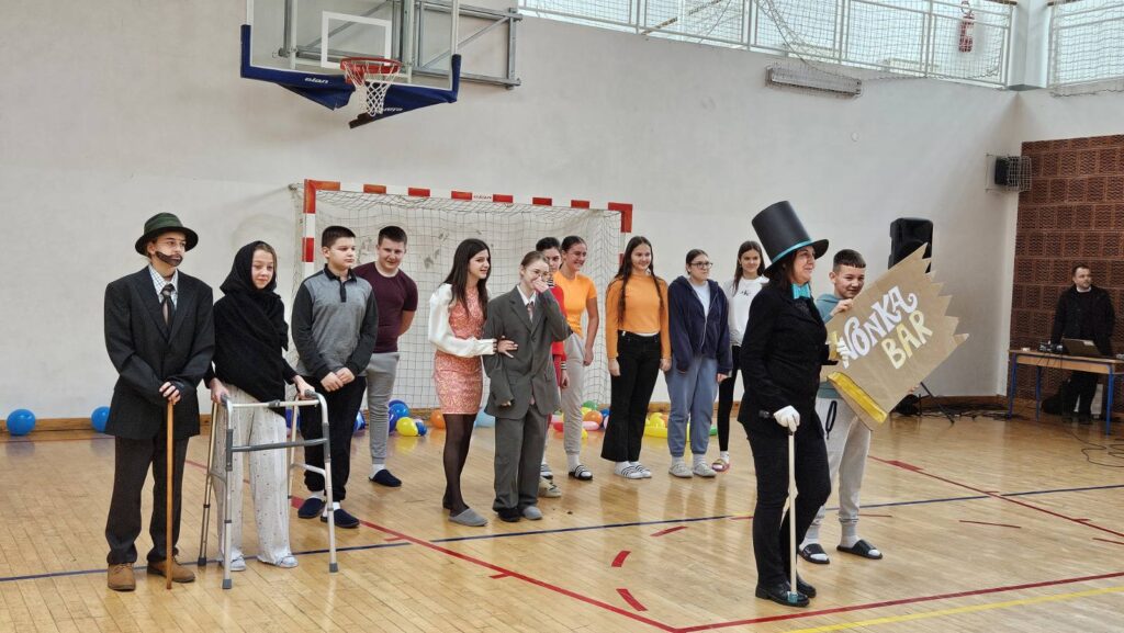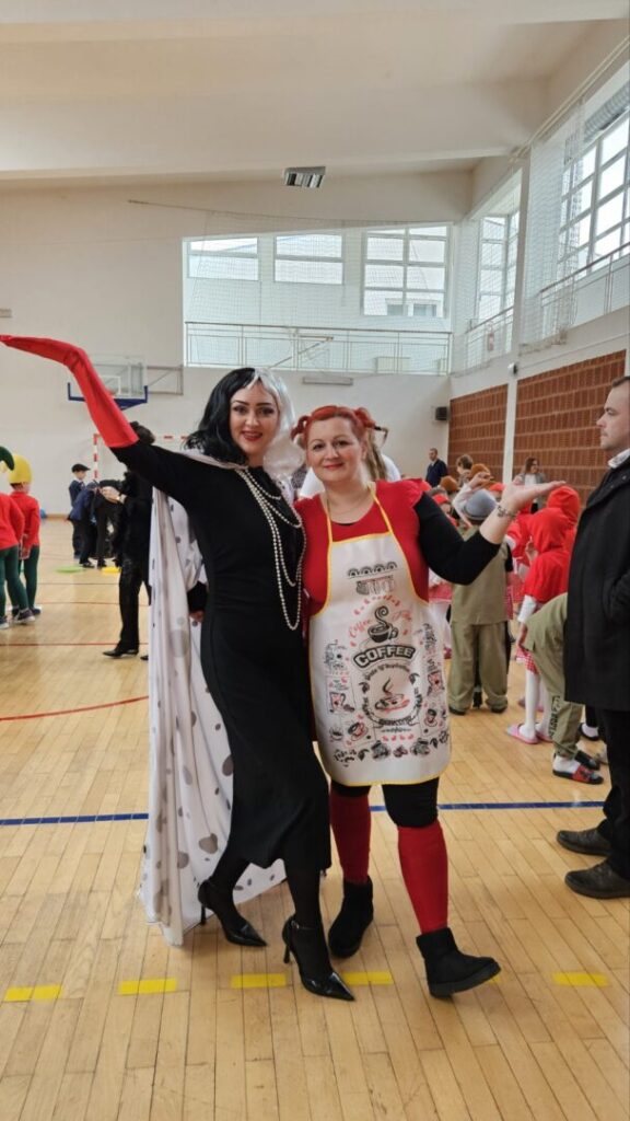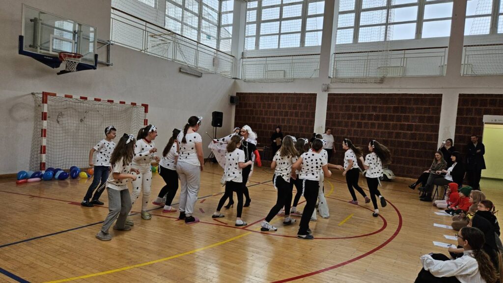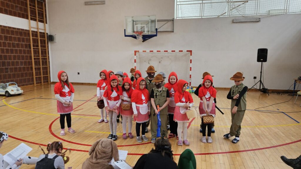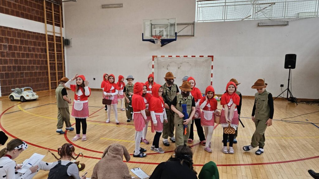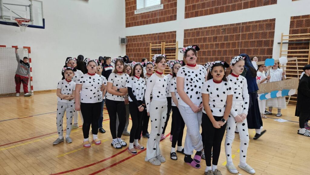 Danas je u našoj školi održan tematski maskenbal. Učenici su imali zadatak skupno (na razini razreda) maskirati se u likove iz književnog djela po vlastitom izboru. Tako su se u našoj dvorani susreli likovi iz književnih djela: Crvenkapice, Poštarske bajke, Čudnovatih zgoda šegrta Hlapića, Pipi Duge Čarape, 101 dalmatinca, Vlaka u snijegu, Charlieja i tvornice čokolade i Breze.