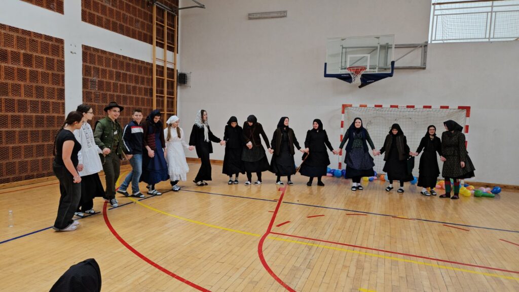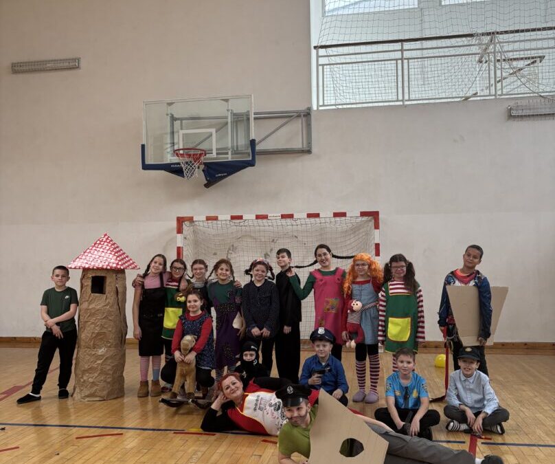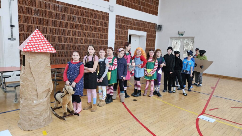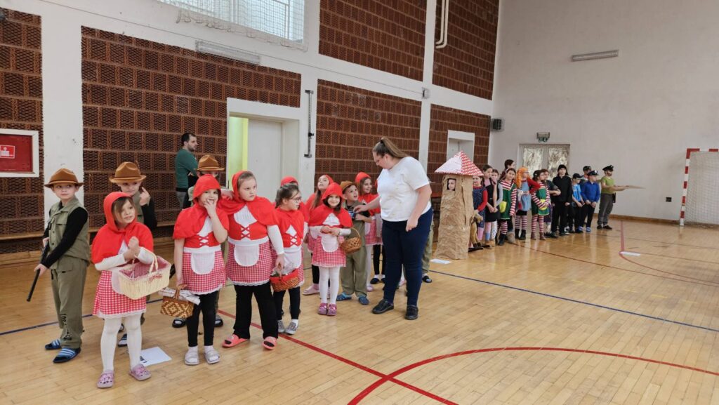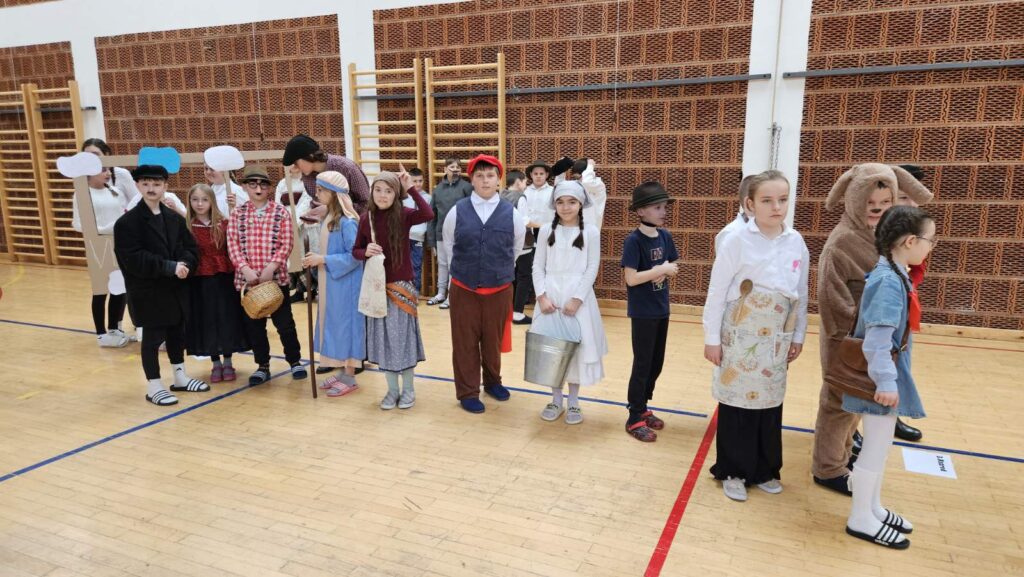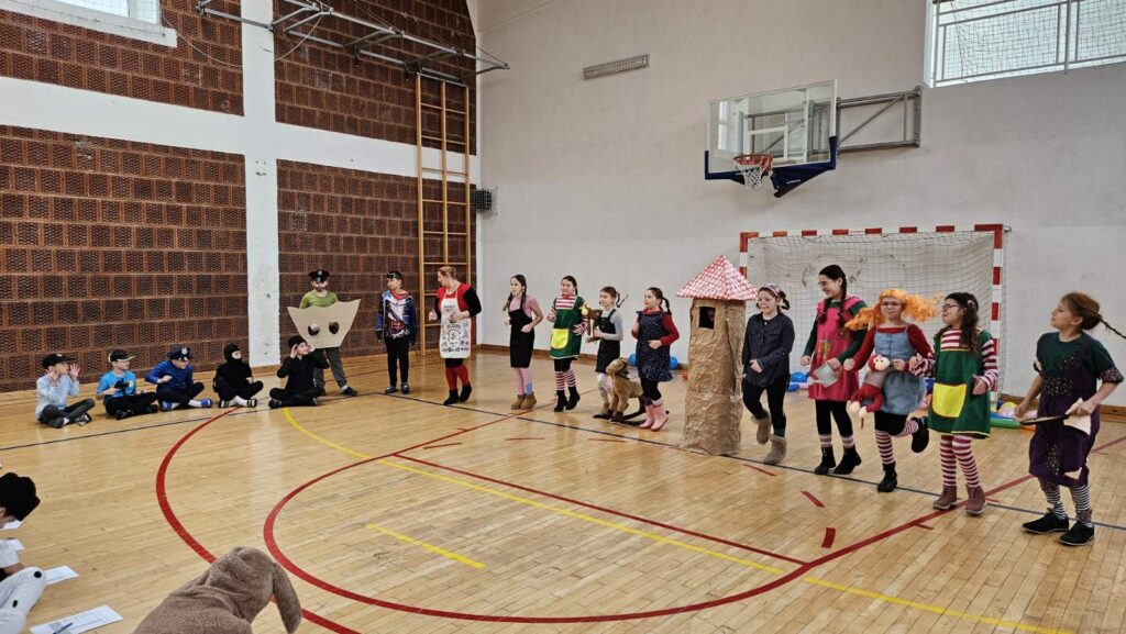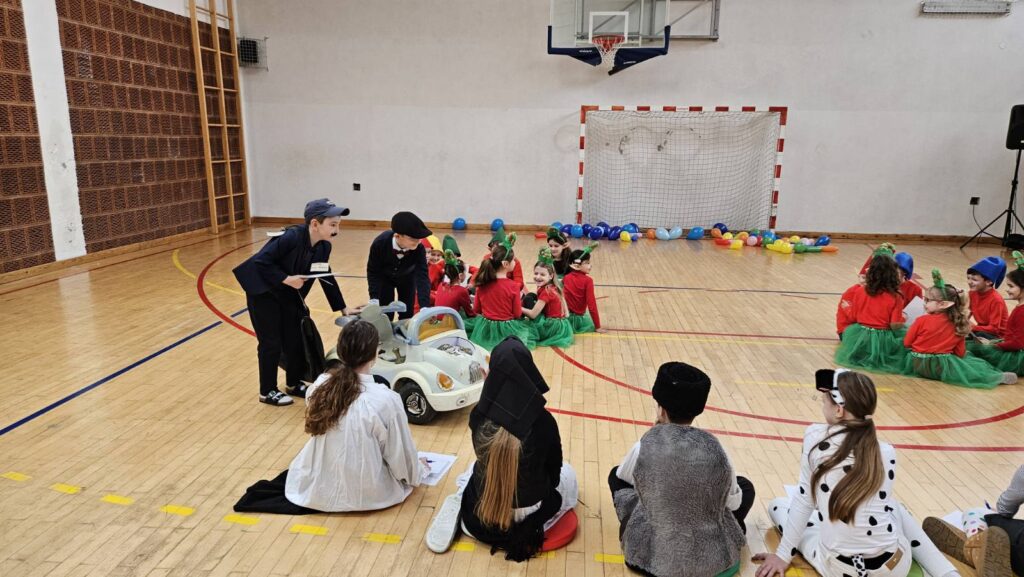 Danas je u našoj školi održan tematski maskenbal. Učenici su imali zadatak skupno (na razini razreda) maskirati se u likove iz književnog djela po vlastitom izboru. Tako su se u našoj dvorani susreli likovi iz književnih djela: Crvenkapice, Poštarske bajke, Čudnovatih zgoda šegrta Hlapića, Pipi Duge Čarape, 101 dalmatinca, Vlaka u snijegu, Charlieja i tvornice čokolade i Breze.