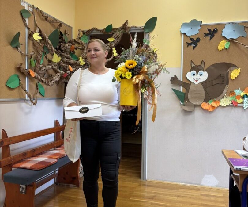U utorak, 7.10.2025., Radio Slavonija priredio je iznenađenje za našu učiteljicu Katarinu. Naime, povodom Svjetskog dana učitelja, upravo ona je dobila najviše glasova na nagradnom natječaju. Uz ovo priznanje, učiteljica je dobila buket, slatki paket i poklon bon masaže za cijelo tijelo.